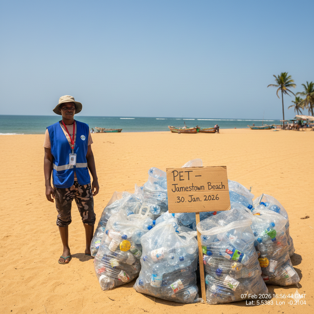 A geo-tagged photograph showing the evidence with location metadata embedded. Supports before/after photos for environmental work like tree planting, reforestation, waste collection, and ocean cleanup.